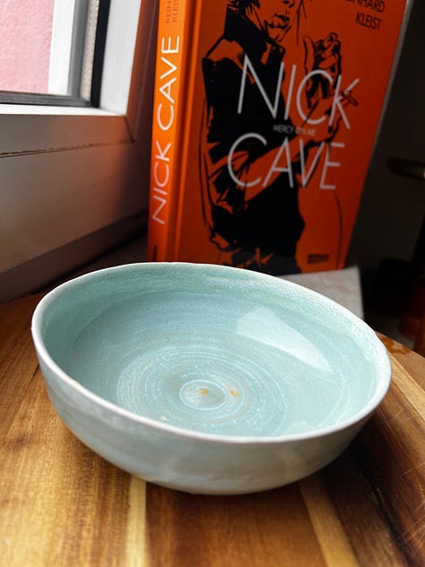 Phil lästert, Kaddi kontert. Töpfern? Nein! Ceramic Arts, honey! Denn, wenn Nick Cave unter die Keramiker geht, dann kann Kaddi das auch. Hier sind die ersten gebrannten Kinder als Beweis. Niveau: kurz unter Kindergarten. Aber Kaddi robbt sich ran.